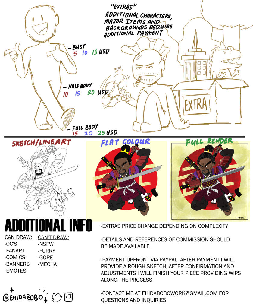 -I do commissions! If you need a custom piece for your twitch, youtube, profiles or pretty much anything please shoot me a message at [email protected]